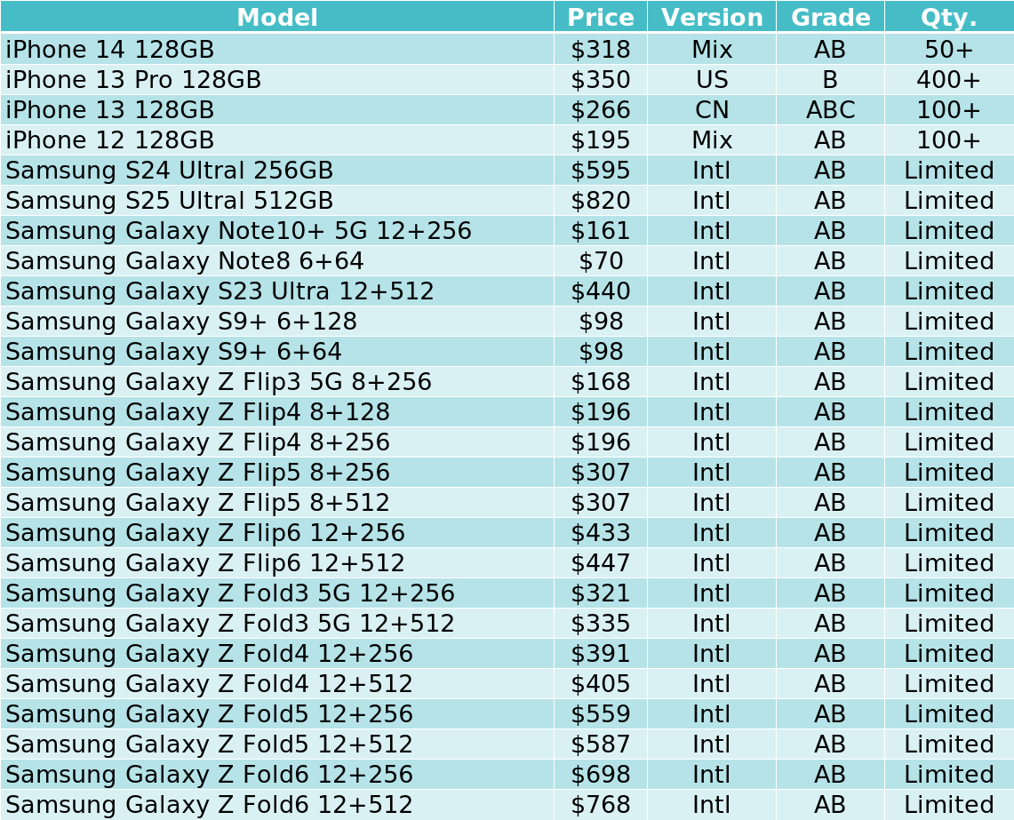 Giggle Trade Price List of Used & Refurbished Phones - 2025-08-25
