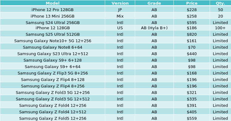 Giggle Trade Price List of Used & Refurbished Phones - 2025-09-04